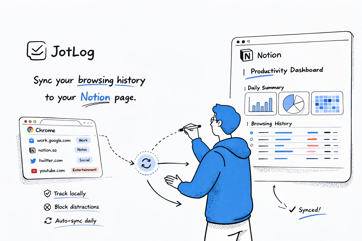 Manual time tracking is a chore. Losing focus to social media is frustrating. JotLog provides a passive, set-it-and-forget-it solution that runs quietly in your browser.